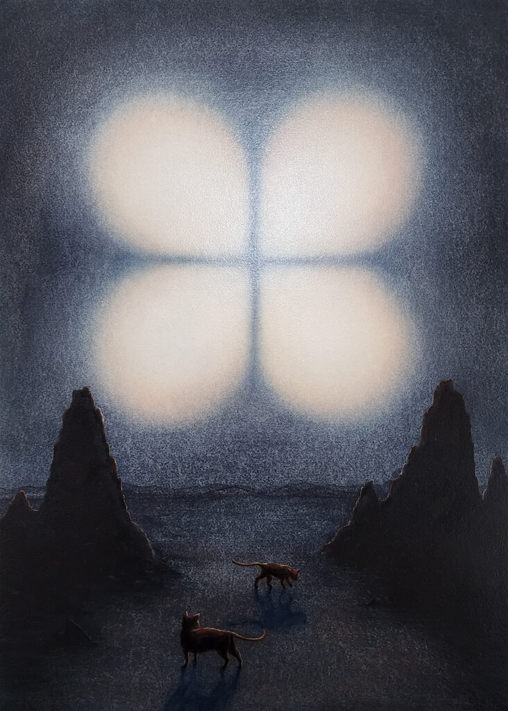 Overall, I’m facinated by how we interact with and consider thoughts in a time when so much of life happens separate from the body. We spend our time considering screens and images, content fed directly to the viewer. As such, the mind becomes an arena thoughts interacting, battling and moving without anything to distract while themselves being the distraction.